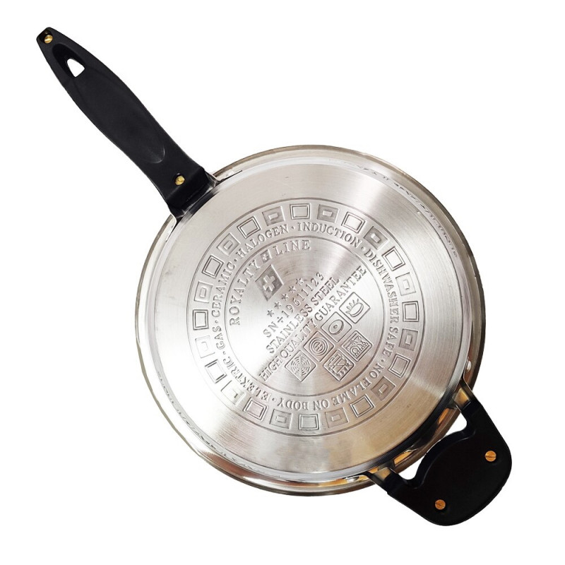Комплект съдове и аксесоари за готвене Royalty Line RL-16RGNM, 16 части, Незалепващ тиган, Термо контрол, Инокс
