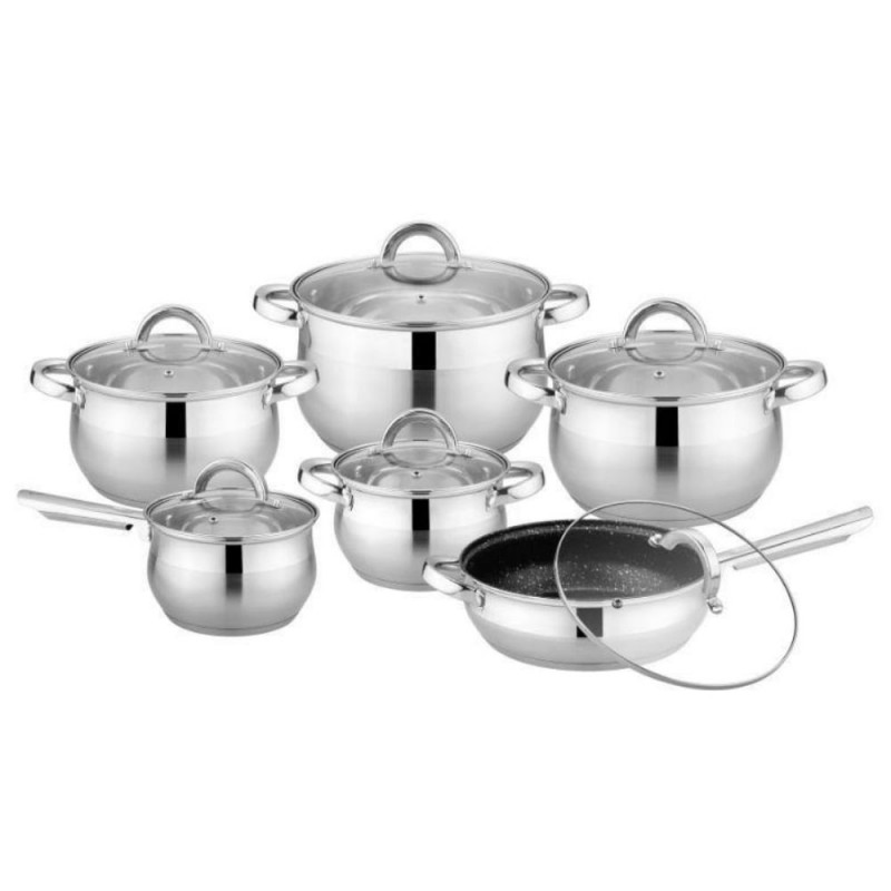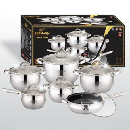 Комплект тенджери Bohmann BH 333-12 MRB, 12 части, Индукция, Незалпващ тиган, Инокс