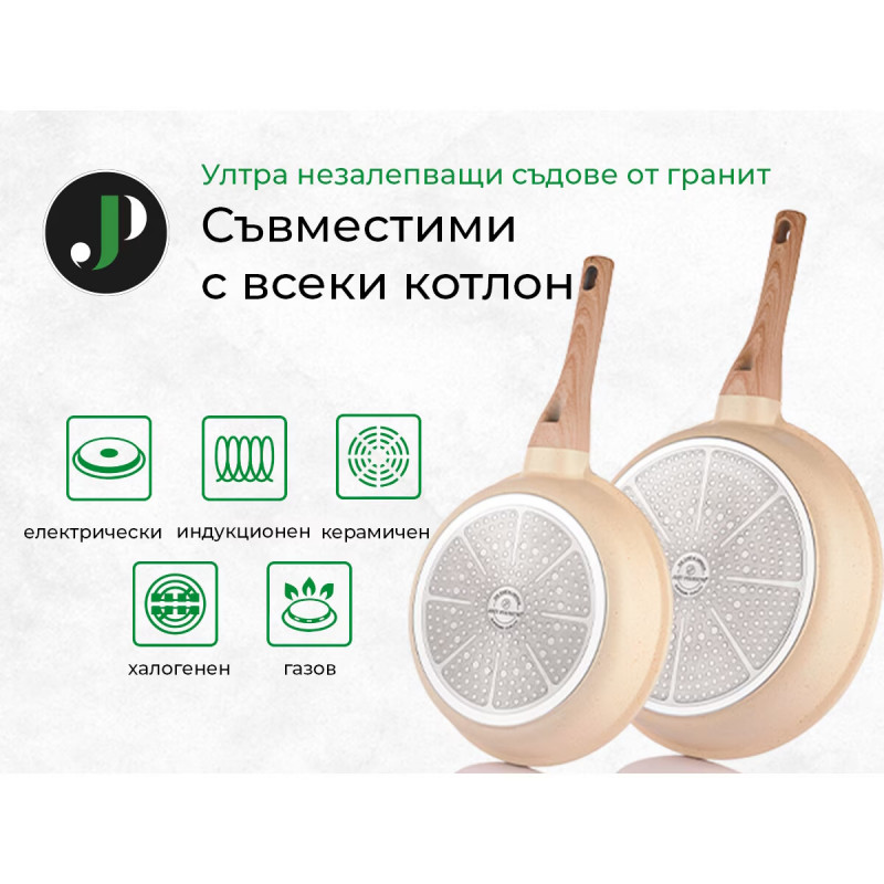 Комплект тенджери и тигани Just Perfecto JL-779, 15 ч, Отливка, Мраморно покритие, Индукция, Съд за готвене на пара, Аксесоари, Бежов