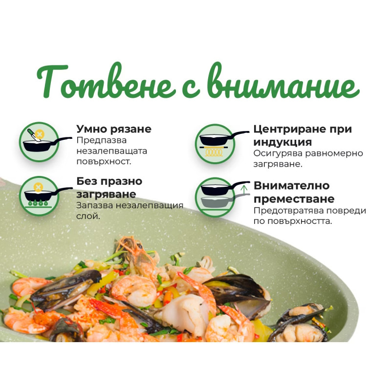 Комплект тенджери и тигани Just Perfecto JL-787, 15 ч, Отливка, Мраморно покритие, Индукция, Аксесоари, Зелен
