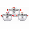 Комплект тенджери Oliver Voltz OV51210N6B, 6 части, Индукция, Силиконови дръжки, Инокс/Червен