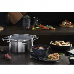 Минималистичен дизайн - функционален и вдъхновен от скандинавския начин на живот. Дизайн, който подчертава стил, семплост и функционалност едновременно.Този първокласен комплект тенджери Tefal от неръждаема стомана осигурява оптимално разпределение на топлината и е идеален за приготвяне на вкусни ястия за цялото семейство.