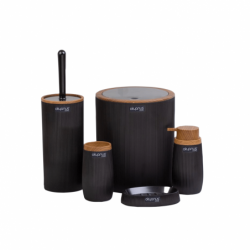 Комплект за баня Freehome OKY-478-3-S, 5 части, Дървен/Черен райе