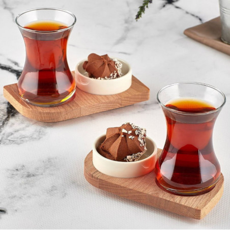 Комплект за турски чай Kosova 949FRB1237, 6 части, Чаши 135 мл, Подложка, Десертна купичка, Кафяв