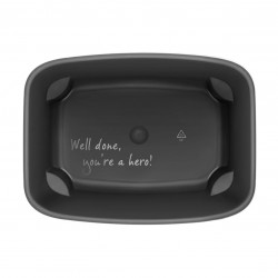 Кош за смет, който спестява място и с малкия си обем от 12 литра пасва навсякъде. Капакът се отваря и затваря плавно, безшумно и ръчно като няма значение дали хващате капака отляво, отдясно или отпред. Вътрешната кофа се вади и по този начин гарантира лесно почистване и добра хигиена. Снабден с удобна дръжка за лесно пренасяне и мека противоплъзгаща се основа, която предпазва повърхностите от надраскване. С кошчето вървят и безплатен мострен пакет на торбички за смет PerfectFit с размер C, които идеално пасват като форма и размер. Изработен от 34% рециклирани материали и е 98% рециклируем след като излезе от употреба.