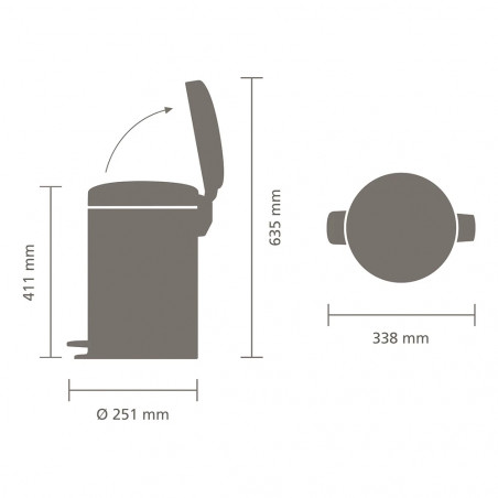 Кош за боклук с педал Brabantia NewIcon 1001090, 12 л, Плавно затваряне, Противоплъзгаща основа, Минерално покритие, Сив