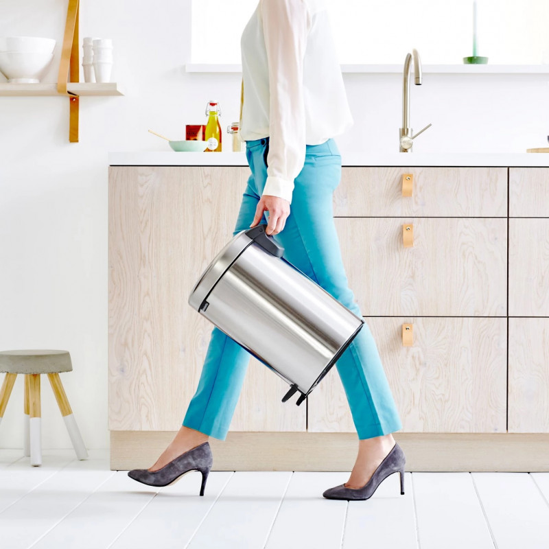 Кош за боклук с педал Brabantia NewIcon 649031, 12 л, Плавно затваряне, Противоплъзгаща основа, Устойчив на пръстови отпечатъци, Инокс/Мат