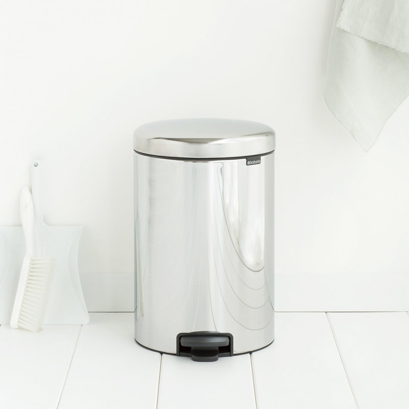 Кош за боклук с педал Brabantia NewIcon 649048, 20 л, Плавно затваряне, Противоплъзгаща основа, Метална вътрешна кофа, Инокс
