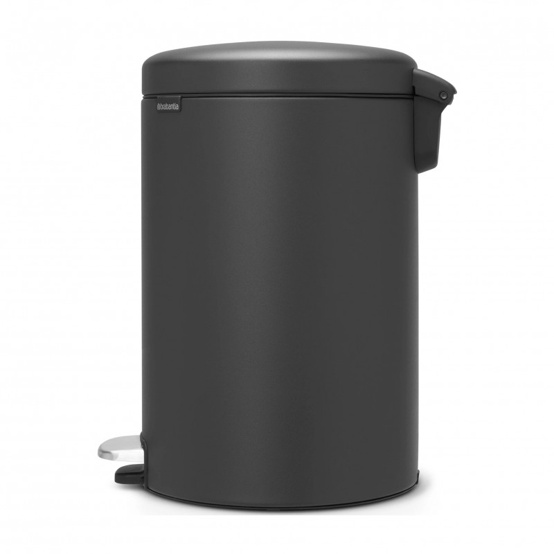 Кош за боклук с педал Brabantia NewIcon 649747, 20 л, Плавно затваряне, Противоплъзгаща основа, Минерално покритие, Тъмносив