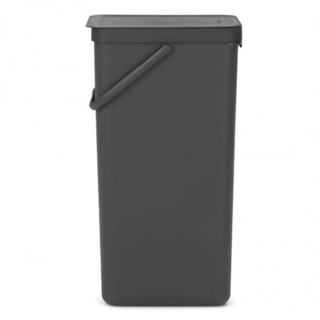 Най-големият кош от серията Sort&Go на Brabantia е създаден за нуждите на по-големи домакинства. Със своята вместимост от 40 литра, той е идеален за разделно събиране на отпадъци, а тесният и висок дизайн позволява да бъде поставен плътно до стена или в ъгъл. Подходящ е за използване на пода, но може да бъде монтиран и на стена със скоба (предлага се отделно). Капакът може да се застопорява отворен за удобно ползване, а с помощта на здравата дръжка и ръкохватката в основата, кошът се пренася и изсипва с лекота.
