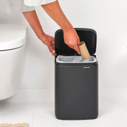 Вътрешната подвижна кофа гарантира лесно почистване и безупречна хигиена. Кошчето е снабдено с удобна дръжка за пренасяне и противоплъзгаща основа, която предпазва повърхностите от надраскване. За допълнително удобство получавате безплатен мострен пакет торбички PerfectFit (размер A), които прилягат идеално. Brabantia Bo Small съчетава елегантност и практичност, като същевременно е екологичен избор -изработен от устойчиви материали.