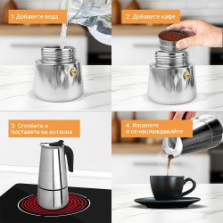 Кубинска кафеварка Rosberg R51173F4, 4 чаши, Инокс