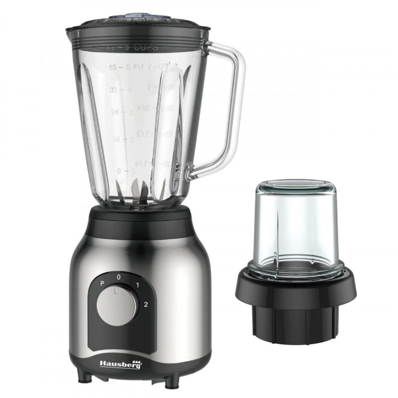 Блендер с мелничка Hausberg HB-7762, 600W, 1.5l, 2 скорости и PULSE, Стъклен съд, Инокс