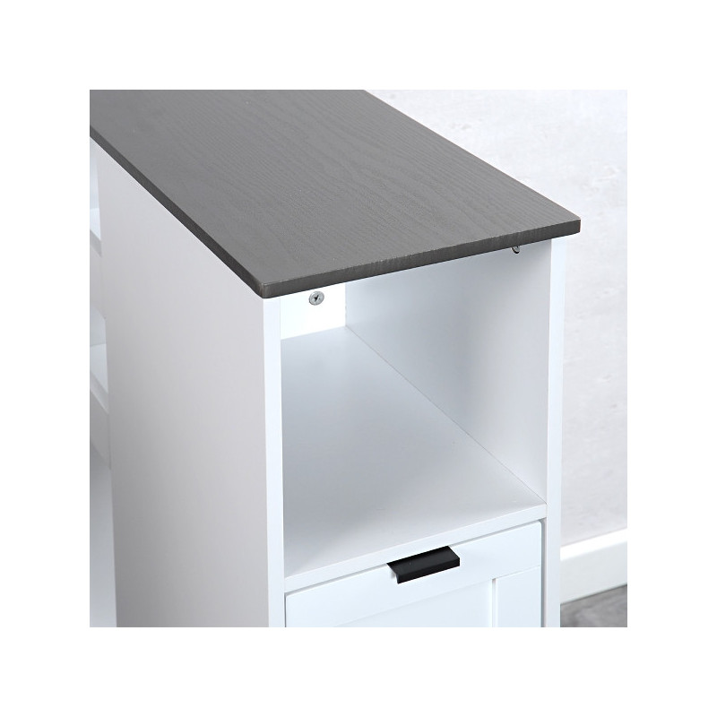 Този портативен шкаф може да се превърне в един от най-добрите ви помощници в кухнята. Той има три рафта, на които можете да сложите любимите си кухненски аксесоари, които да са ви винаги под ръка. Снабден е с чекмедже и с прибиращ се в шкафа кош за боклук. Прекрасна комбинация от естетичен вид и практичност.