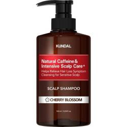 С аромат на цвят на череша, шампоанът KUNDAL Caffeine Scalp съдържа 24 растителни съставки, които помагат за общото подобряване на състоянието на скалпа. Формулата му е обогатена с екстракт от кофеин, извлечен от зелени зърна кафе, който е известен с борбата си с косопада