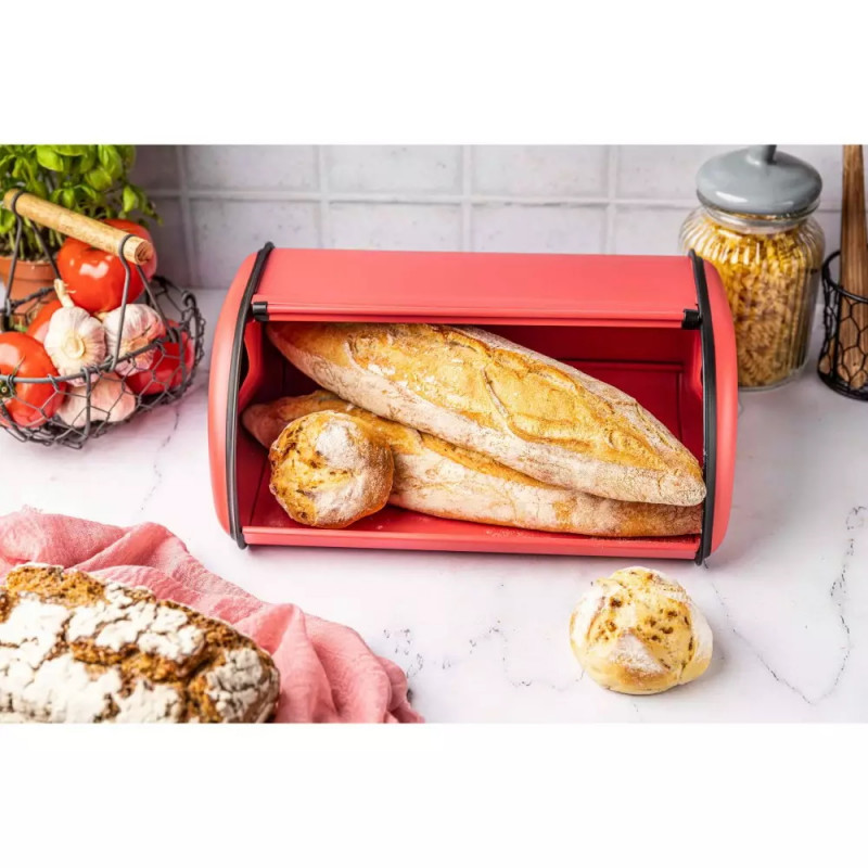 • Кутия за хляб Kinghoff KH 1753, 36 см, Лека и здрава конструкция, Стомана, Червен