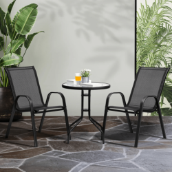 Луксозен градински комплект маса с 2 стола MAR, 3 части, Закалено стъкло, Устойчив на влага