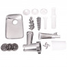 Тази месомелачка е перфектна за мелене на различни видове месо. Разполага с острие и три диска от неръждаема стомана за фино, средно и едро смилане. С приложените аксесоари можете да приготвяте кюфтета и колбаси, а добавянето на преса за домати ви позволява да приготвяте доматено пюре, сосове и заливки. Освен това, разполага с функция "обратен ход" за допълнителна мощ и лесно почистване на остатъците. Разполага с мощност от 1500W.