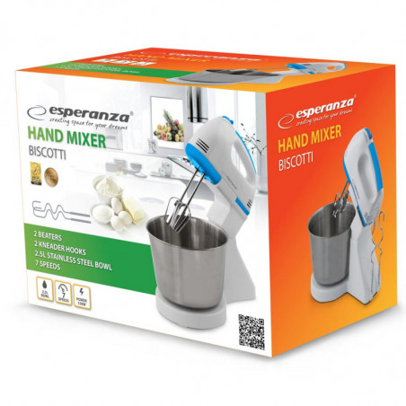 Миксер с купа Esperanza Biscotii EKM019W, 150W, 2.5l стоманена купа, 7 скорости, Бял/син
