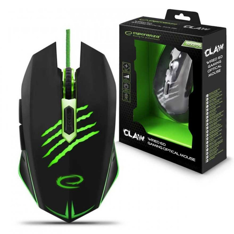 Мишка Esperanza EGM209G , Допълнителни бутони, DPI 800/1200/1600/2400, Оптична, Черен/зелен