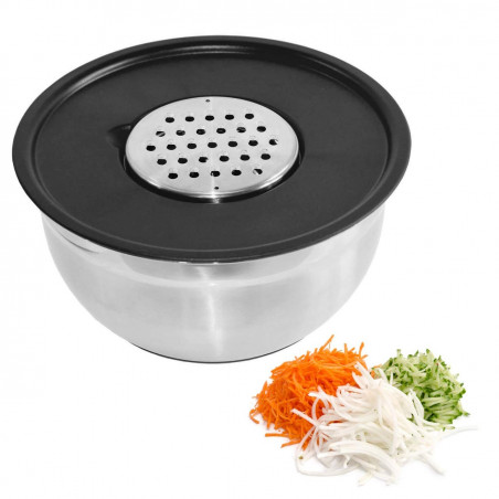 Мултифункционална купа за салата HausRoland XJ-08171, 20 см, 3 рендета, Неплъзгаща се, Инокс