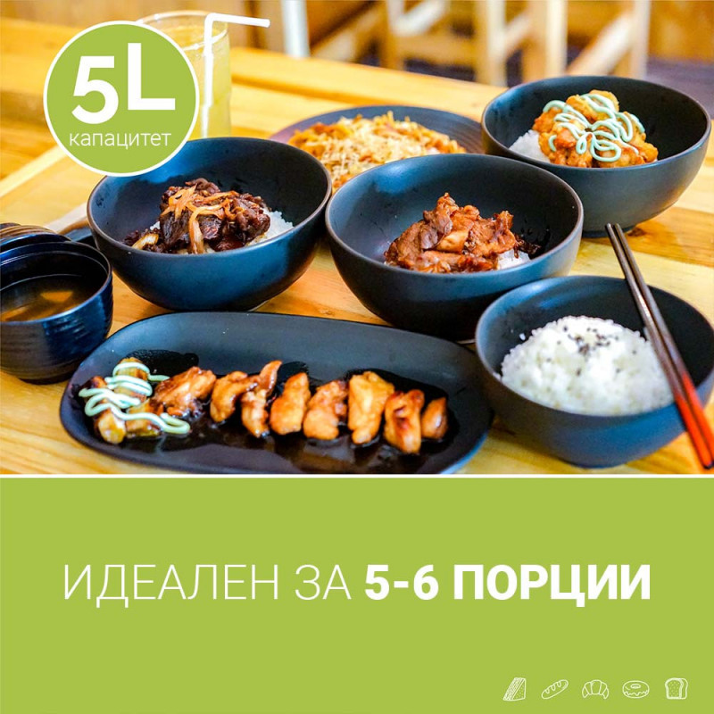 5-литровата купа на мултикукъра ще ти осигури достатъчно място, за да приготвиш любимите ястия на своето семейство.