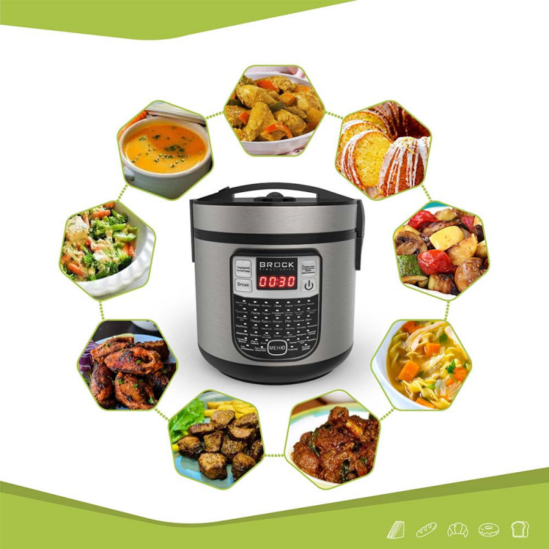 Мултикукър с 45 програми BROCK MC 4501, 700W, 5 литра, Керамично покритие, Отложен старт 24 часа, Аксесоари, Инокс
