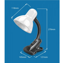 Настолна лампа Esperanza ELD106W, 12W, Цокъл Е27, Захват щипка, Гъвкаво рамо, Бял