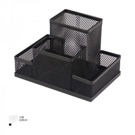 Органайзер за бюро, 4 отделения, Мрежест, Метален, Черен