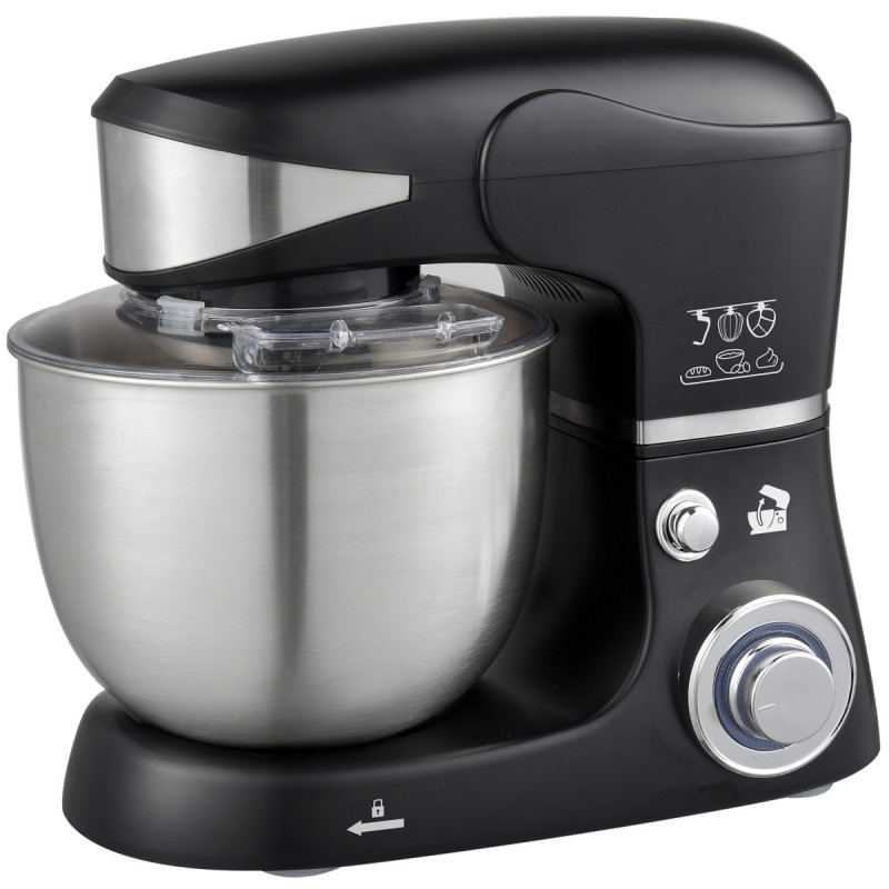 Планетарен миксер с иноксова купа Royalty Line RL-PKM1600 Max, 1600W, 5.5 литра, 3 скорости + Pulse, Приставки, Черен