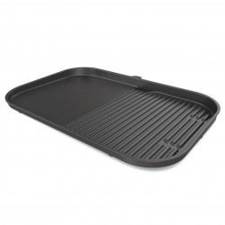 Ninja XSKOGXLGGCMEU - комбинирана незалепваща плоска и оребрена плоча за барбекю за Ninja Woodfire XL BBQ Grill OG850 / OG901. Позволява едновременно печене и сотиране: плоската част е подходяща за яйца, зеленчуци и деликатни продукти, а оребрената осигурява перфектно маркиране при месо и бургери. Плочата е с керамично незалепващо покритие, което улеснява почистването, и позволява приготвяне на няколко ястия едновременно. Може да се използва за комбиниране на различни видове храна или отделяне на вегетариански и месни продукти.