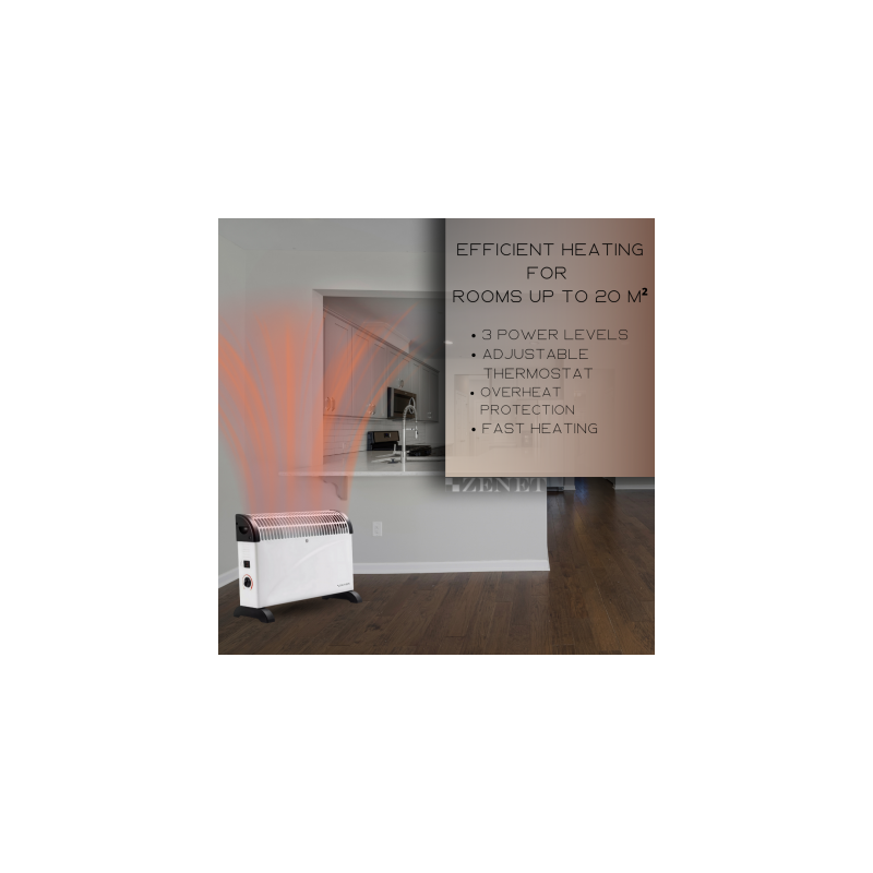 Подов конвектор Zenet ZET-520, 2000W, 20 м2, 3 степени, Термостат, Защита от прегряване, Бял