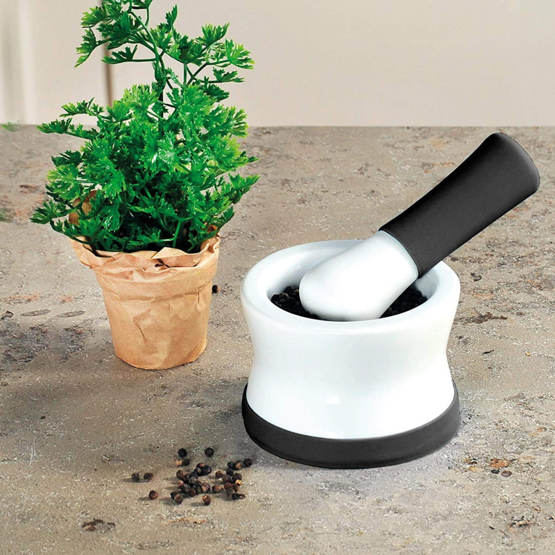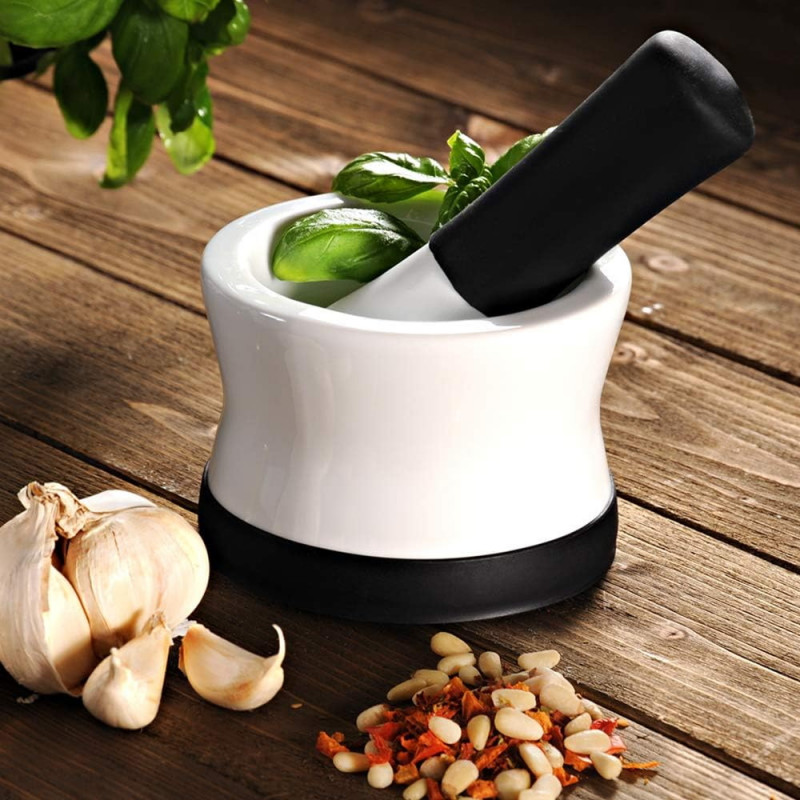 Независимо дали приготвяте песто или смилате пресни подправки и билки - с това порцеланово хаванче добрият резултат е като детска игра.