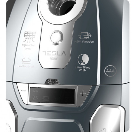 Прахосмукачка с торба Tesla BG600G, 700W, 3 литра, HEPA миещ се филтър, 61 dB, Сив