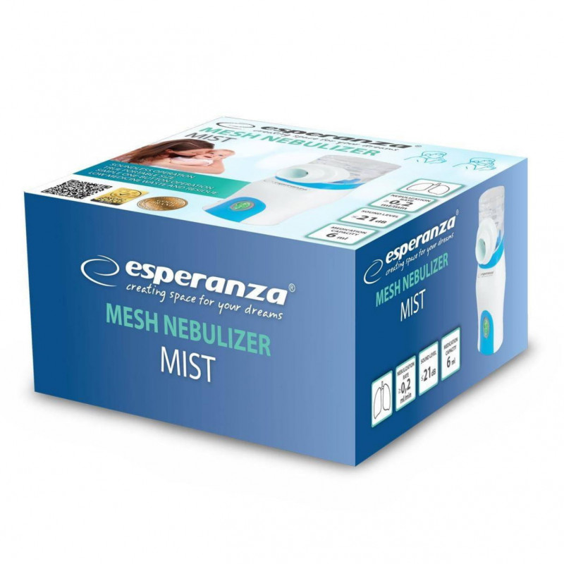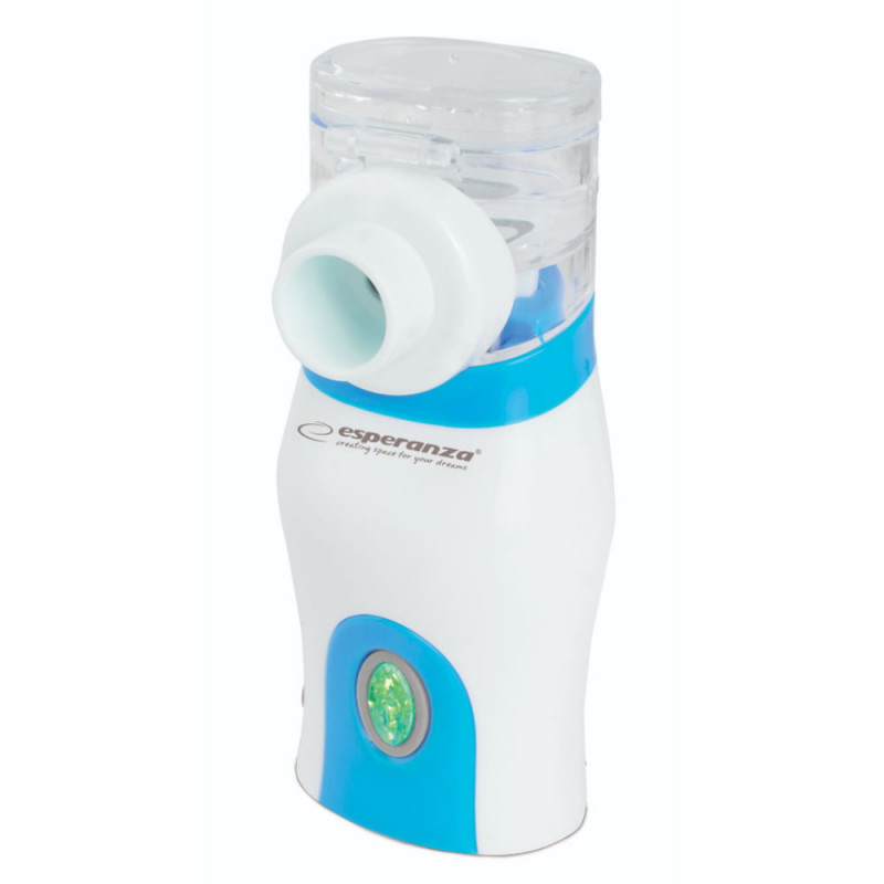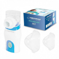 Преносим инхалатор Esperanza ECN005 MIST, 6мл, Ултразвуков, Автоматично изключване, 2 х Маски, Бял/син