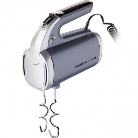 Ръчен миксер Carrera 555, 300W, 4 скорости, Турбо, Кука за тесто, Бъркалки от Inox, Сив