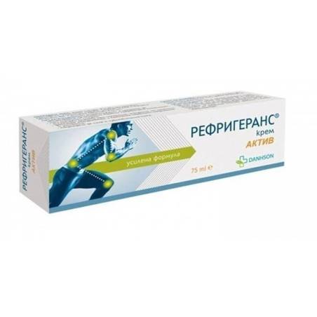 РЕФРИГЕРАНС АКТИВ крем 75 мл. е продукт за облекчаване на мускулни спазми и болка с различен произход. Особено подходящ при спортни травми, болки в ставите, разтегнати сухожилия и кожни раздразнения
