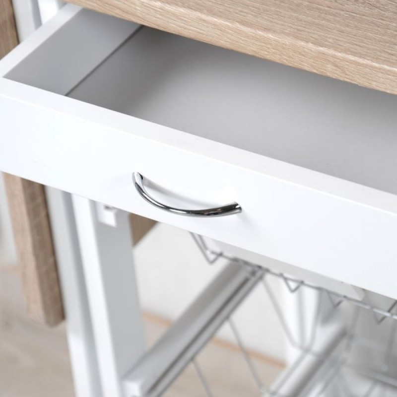 Сервизна количка с разтягащ се плот Kesper 25817, 2 сгаваеми плота, Спирачки на колелцата, Бял/кафяв