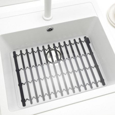 Силиконова подложка за съдове Brabantia SinkSide 1004155, До 220C, Регулируема ширина, Тъмносив