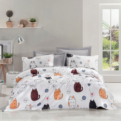 Спален комплект Eponj Home 143EPJ6274, 4 части, Плик 200x235, Чаршаф 220x240, Калъфки 50х70, Памук , Бял/принт
