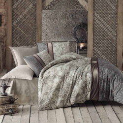 Спален комплект Victoria 121VCT2495, 65% памук - 35% полиестер, 4 части, Плик 200х220 см, Чаршаф 220х240 см, 2 Калъфки 50x70 см, Сив/бежов
