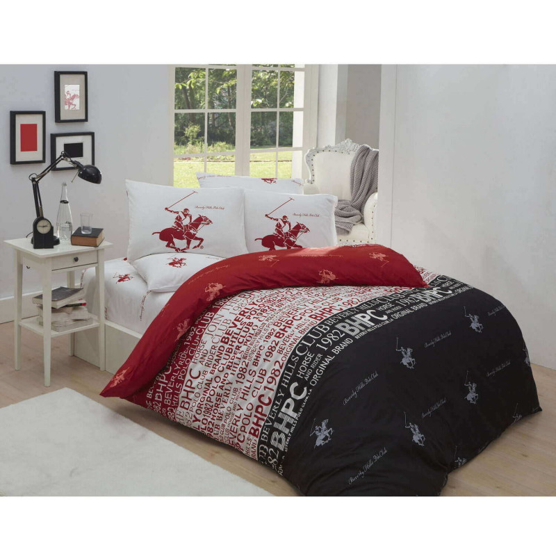 Спално бельо Beverly Hills Polo Club 176BHP2104, 100% памук, Ranforce, 3 части, Плик 160х220см, Чаршаф 160х240см, 1 Калъфка, Червен/Черен