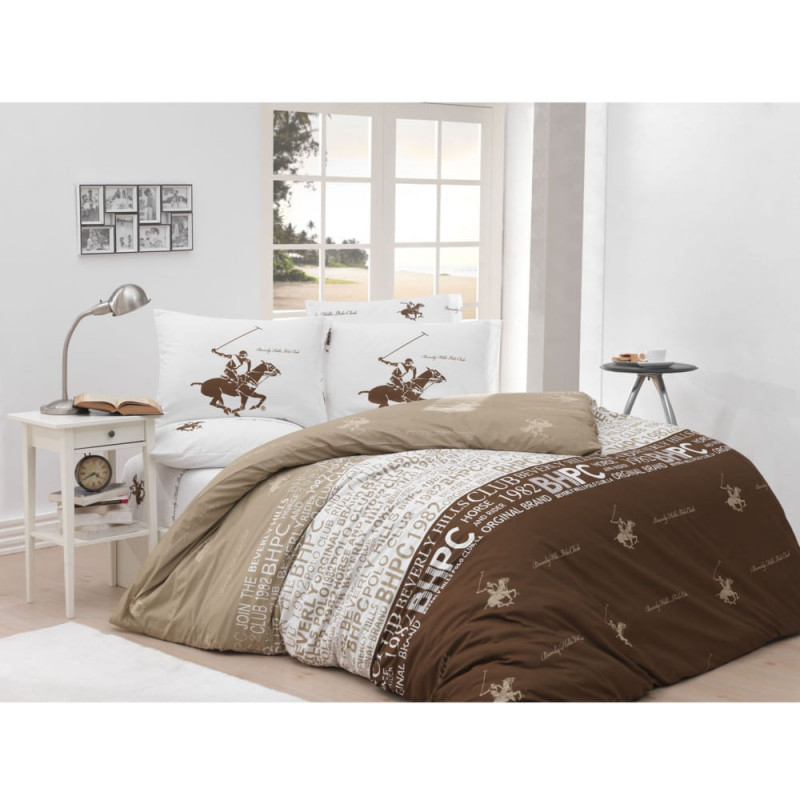 Спално бельо Beverly Hills Polo Club 176BHP2105, 100% памук, Ranforce, 3 части, Плик 160х220см, Чаршаф 160х240см, 1 Калъфка, Кафяв/крем/бял