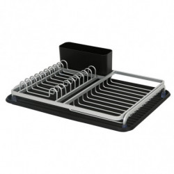 Сушилник за съдове Luigi Ferrero FR-3932A, 43x32x12 см, Устойчив срещу корозия, Стойка с 3 отделения, Табла за отцеждане, Черен/сребрист