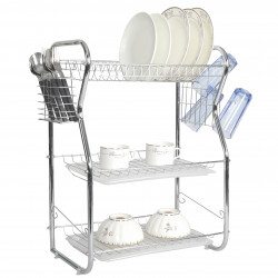 Сушилник за съдове на три нива Rosberg R53000I, Поставки за прибори и чаши, Хром