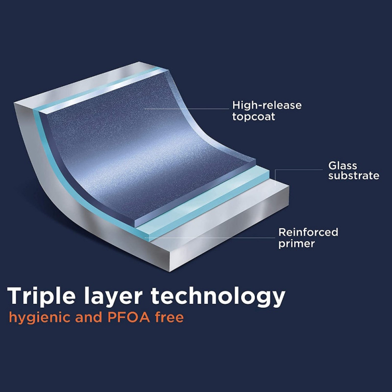 Ростерът е изработен от боросиликатно стъкло, което го прави издръжлив и устойчив на топлинни шокове. Освен това, той има незалепващо покритие, което позволява лесно почистване след употреба.