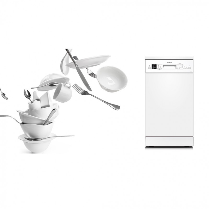 • Съдомиялна Tesla WD690MW, 1800W, Клас Е, Over Flow Protection, Aqua-stop, Половин зареждане, Защита от деца, 7 програми, Бял