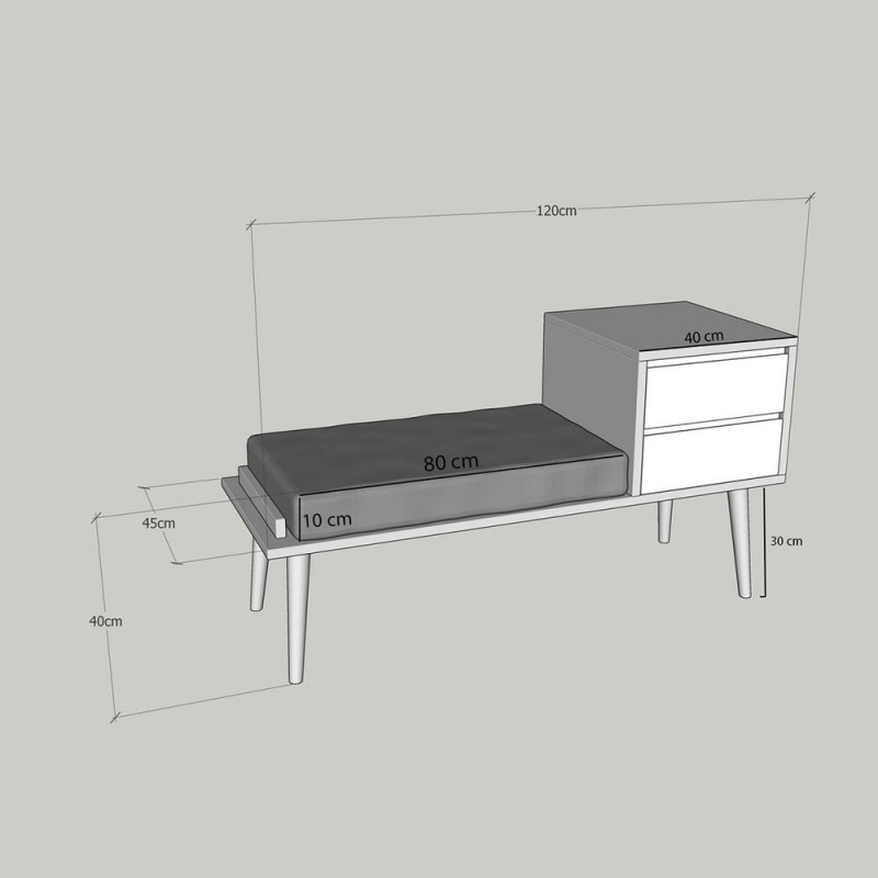 Табуретка шкаф Kalune Design 854KLN3801, 120х45 см, 2 чекмеджета, Меламиново покритие, Кафяв/черен