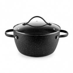 Тенджера от висококачествен кован алуминий, осигуряващ бързо и равномерно нагряване на цялата повърхност. Незалепващото покритие с мраморен ефект позволява здравословно готвене без мазнина и лесно почистване след употреба. Елегантните дръжки от неръждаема стомана с черно PVD покритие придават стилен вид и отлична издръжливост. Подходяща е за всички видове котлони, включително индукционни, както и за използване във фурна. Може да се почиства в съдомиялна машина.