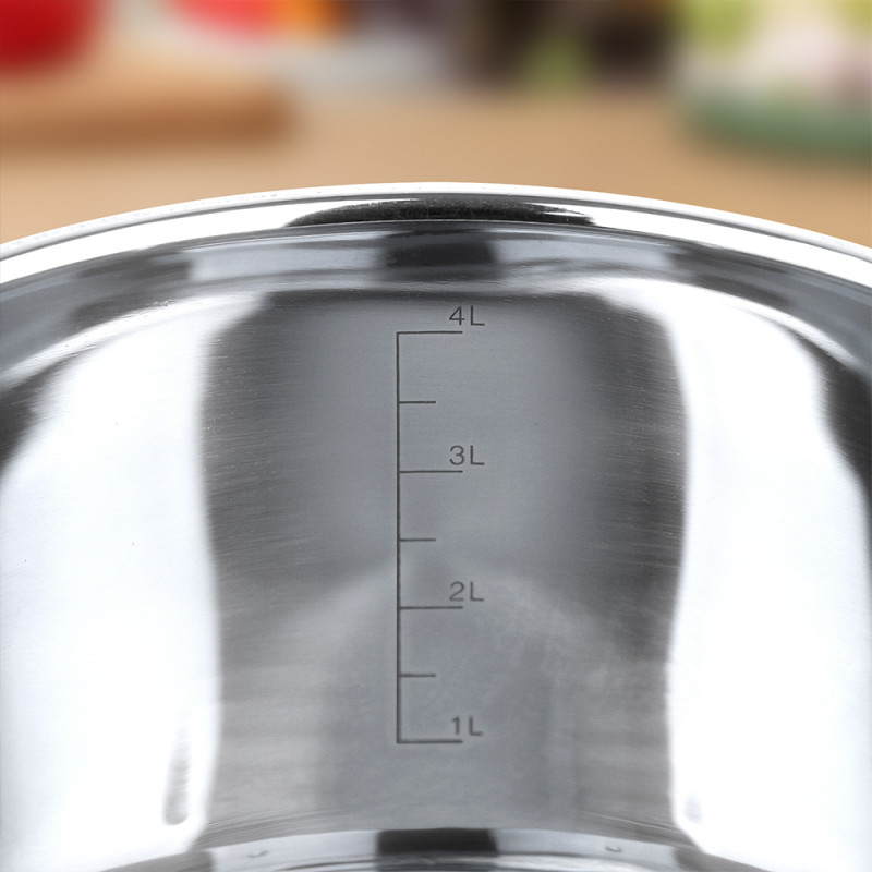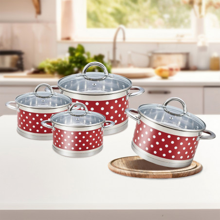 Тенджера Rosberg R51210I24, 24 см, 6.1 литра, Двойно дъно, Индукция, Инокс/червен с бели точки